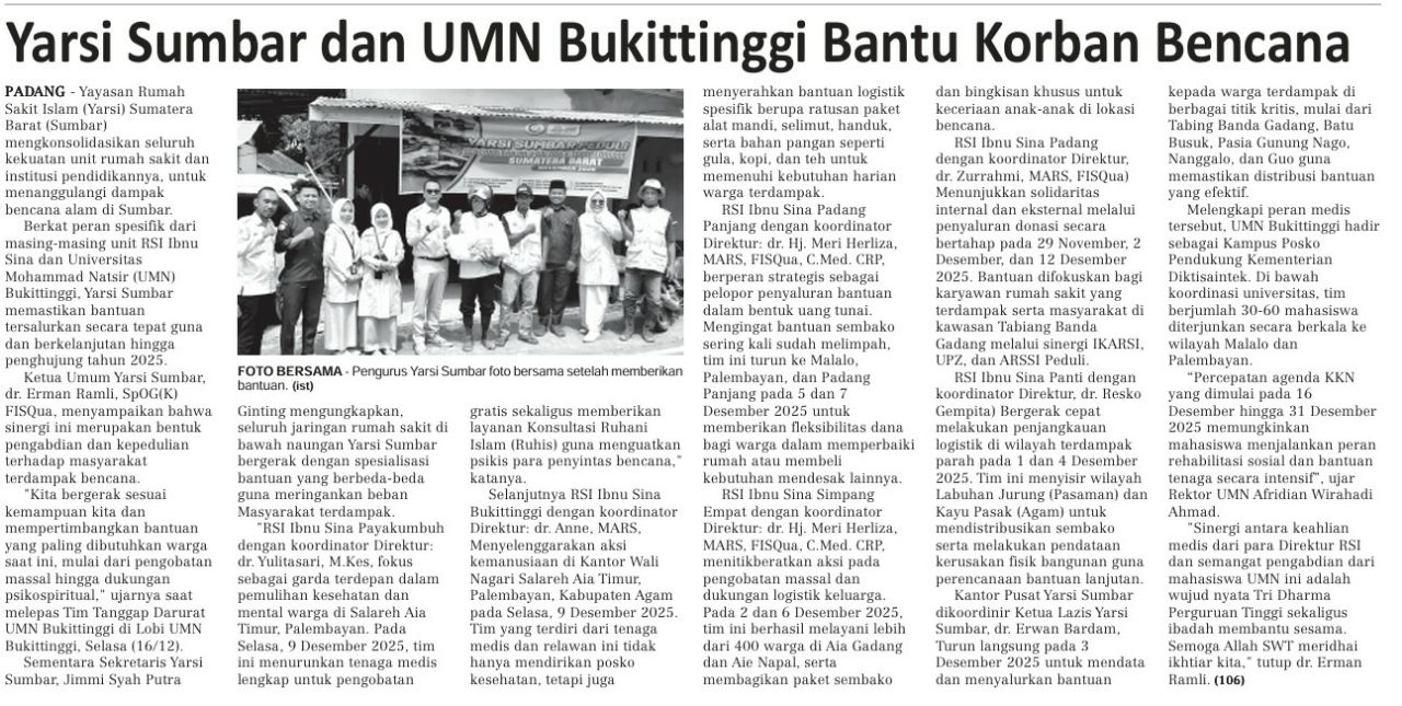 Kegiatan RSI Ibnu Sina Panti dan Universitas Mohammad Natsir YARSI SUMBAR dimuat di Harian Singgalan